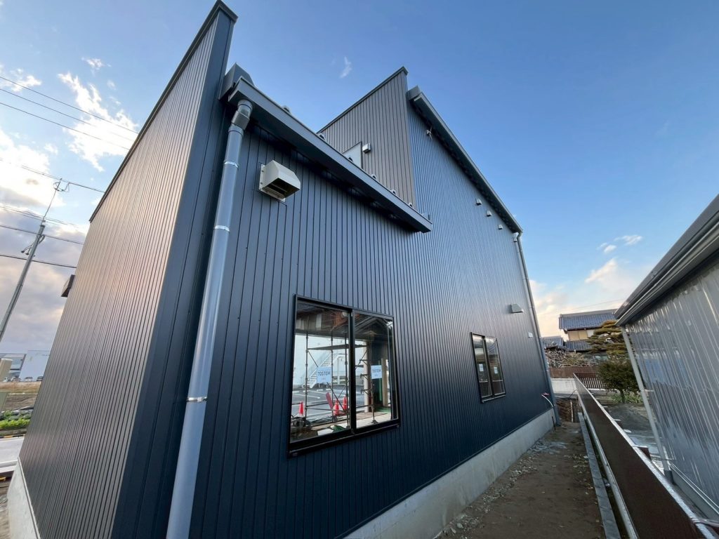 外壁は角波です。シンプルでかっこいい!