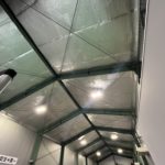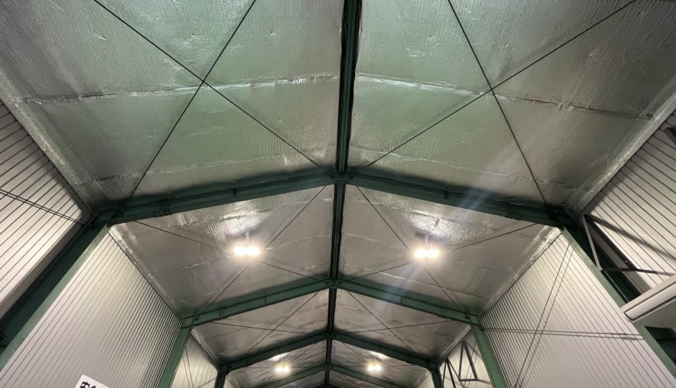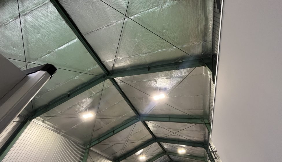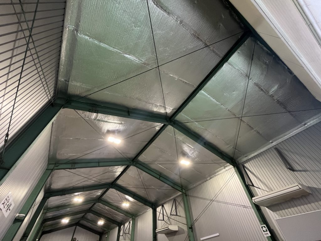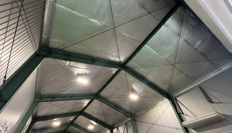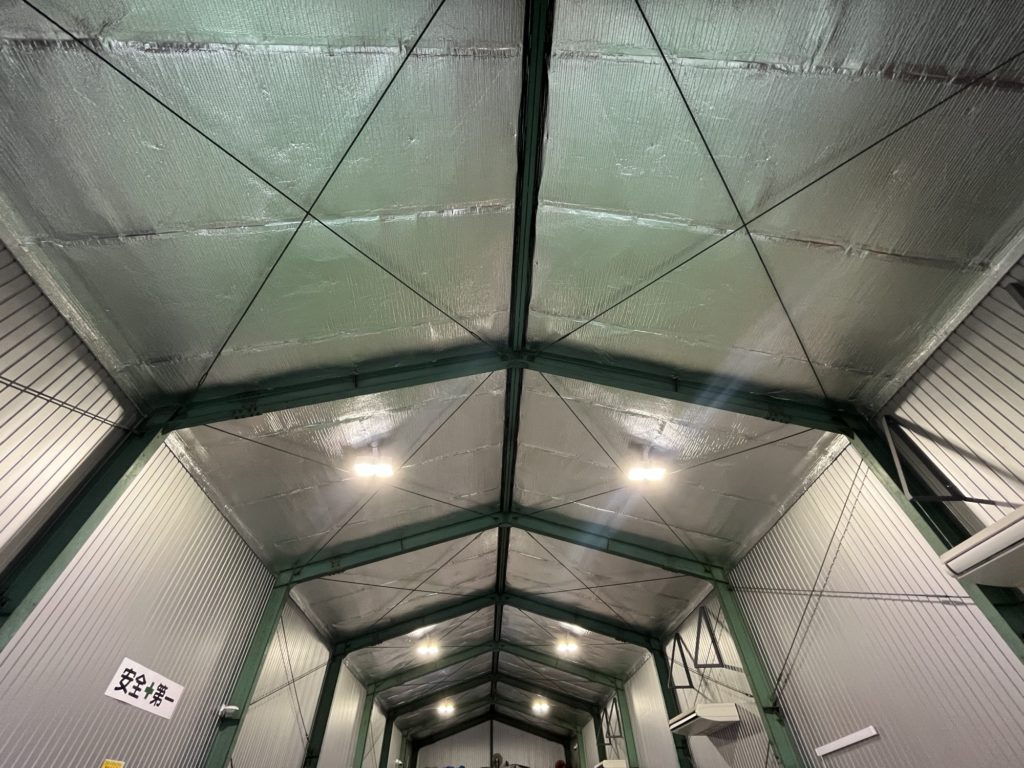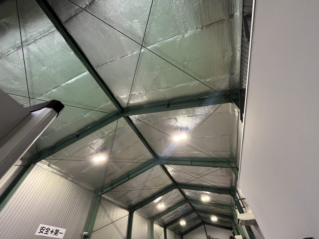 天井に遮熱材のリフレクティックスを張りました。作業車で実働5日間かけて終りました。